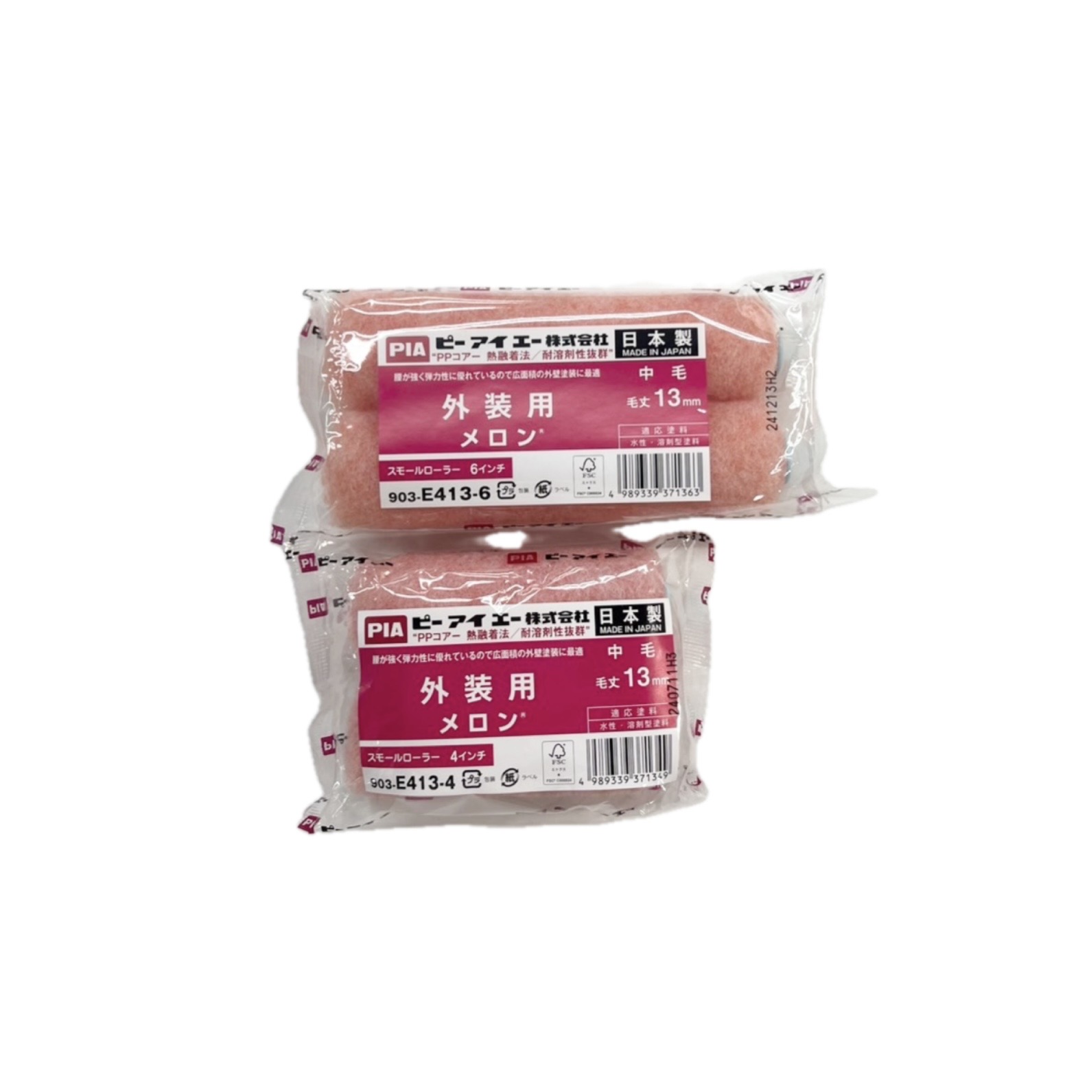 PIA「メロン」は、外壁塗装のプロが求める作業効率を実現する高機能ローラーです。 クリンプ加工の特殊繊維が塗料の含みと吐出しを両立し、広面積でもムラのない塗りを実現。 ナイロン混紡による優れた弾力性・耐久性で、長時間の作業でも腰が強くヘタリにくい設計が特徴です。 水性艶あり塗料から油性エナメルまで幅広く対応し、単層弾性や下地処理(フィラー)にも適応。 4インチ~9インチの豊富なサイズ展開で、外装塗装の多様な現場ニーズに応えます。 プロの作業効率を支える信頼性の高い塗装ツールです。 サイズ スモール:4インチ/13mm/単品(2本パック) スモール:4インチ/13mm/ケース(50本入) スモール:4インチ/20mm/単品(2本パック) スモール:4インチ/20mm/ケース(50本入) スモール:4インチ/25mm/単品(2本パック) スモール:4インチ/25mm/ケース(50本入) スモール:4インチ/32mm/単品(2本パック) スモール:4インチ/32mm/ケース(50本入) スモール:6インチ/13mm/単品(2本パック) スモール:6インチ/13mm/ケース(50本入) スモール:6インチ/20mm/単品(2本パック) スモール:6インチ/20mm/ケース(50本入) スモール:6インチ/25mm/単品(2本パック) スモール:6インチ/25mm/ケース(50本入) スモール:6インチ/32mm/単品(2本パック) スモール:6インチ/32mm/ケース(50本入) レギュラー:7インチ/13mm/単品(1本包装) レギュラー:7インチ/13mm/ケース(24本入) ミドル:7インチ/20mm/単品(1本包装) ミドル:7インチ/20mm/ケース(24本入) ミドル:7インチ/25mm/単品(1本包装) ミドル:7インチ/25mm/ケース(24本入) ミドル:7インチ/32mm/単品(1本包装) ミドル:7インチ/32mm/ケース(24本入) 在庫状態 : 在庫有り ¥500(税込) 只今お取扱い出来ません 数量